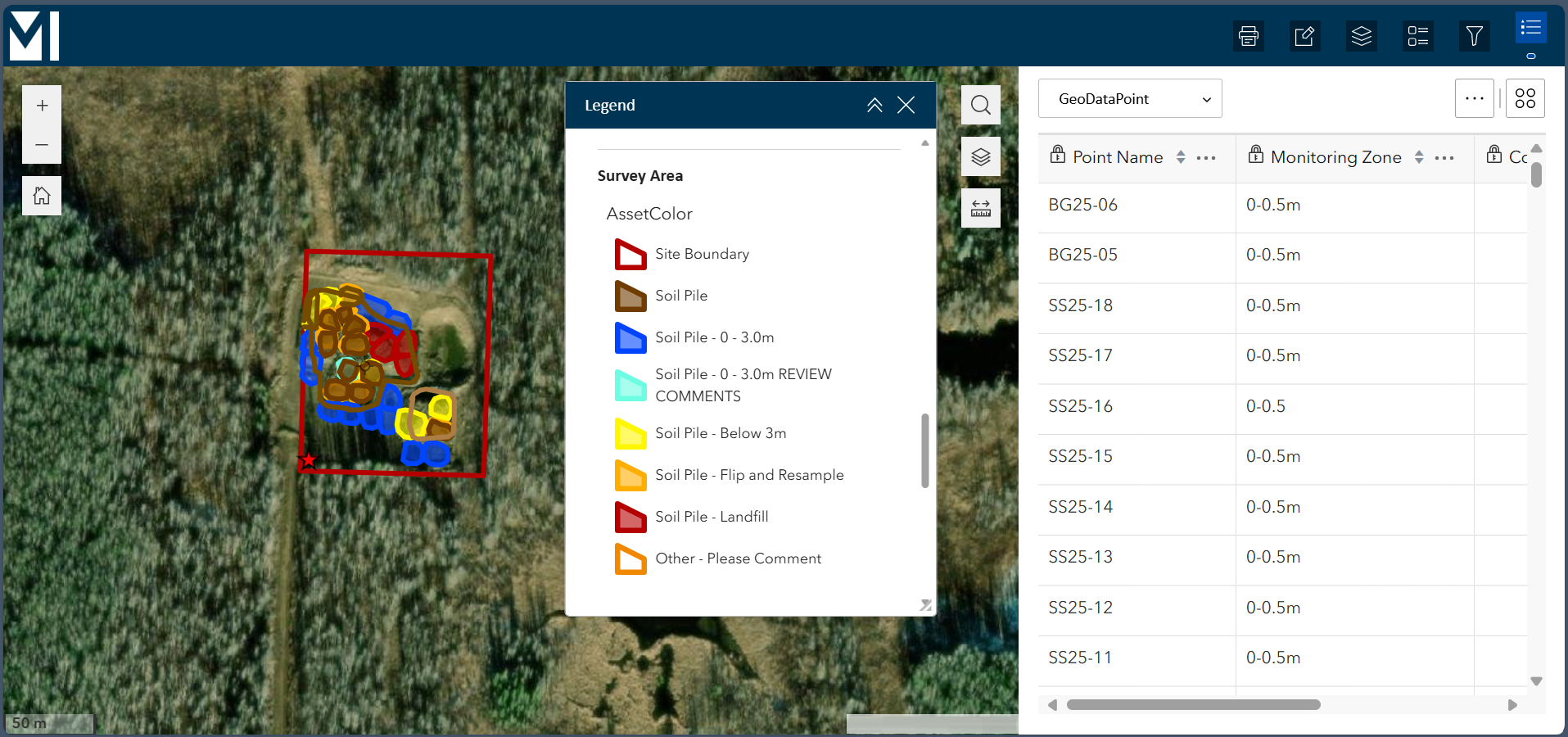 Using Field Maps and ArcGIS Online, we enabled seamless real‑time communication between field staff and the Project Manager. Analytical results were integrated directly into the workflow, allowing the Project Manager to dynamically classify soil materials and instantly communicate updated work plans to the field team.